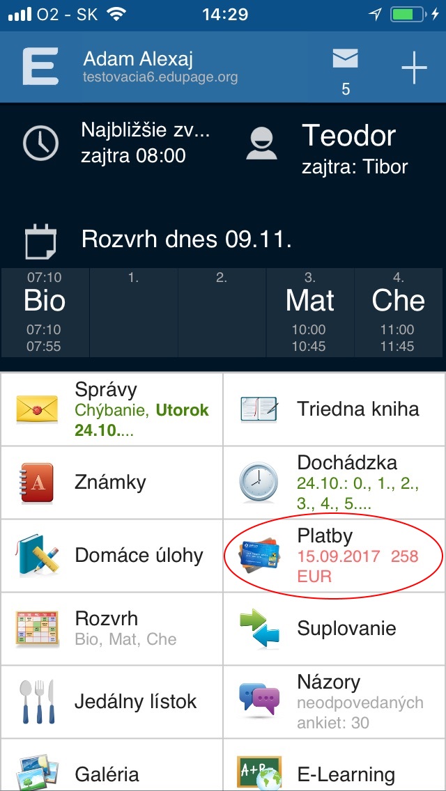 • škola vidí platbu na Edupage ihneď po jej zaplatení. Rodičia sa už nebudú vypytovať či došla platba a vy máte istotu, že žiak naozaj zaplatil (napr. nedoplatok za školskú jedáleň).