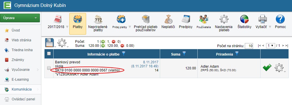 Škola nemusí načítavať bankový výpis a pracne dohľadávať majiteľa platby a predmet platby zo správy pre príjemcu, variabilného alebo konštantného symbolu.