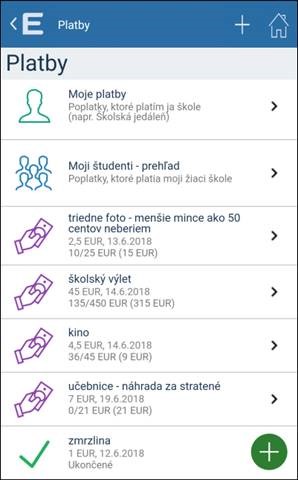 Edupage už niekoľko rokov pomocou modulu platby umožňuje školám viesť evidenciu poplatkov a platieb svojich žiakov, importovať a automaticky párovať platby z elektronických bankových výpisov alebo posielať maily s informáciami o platbách rodičom. Rodičia na webe alebo v mobilnej aplikácii môžu vidieť všetky poplatky, ktoré majú platiť a skontrolovať, ktoré platby už zaplatili alebo nezaplatili.