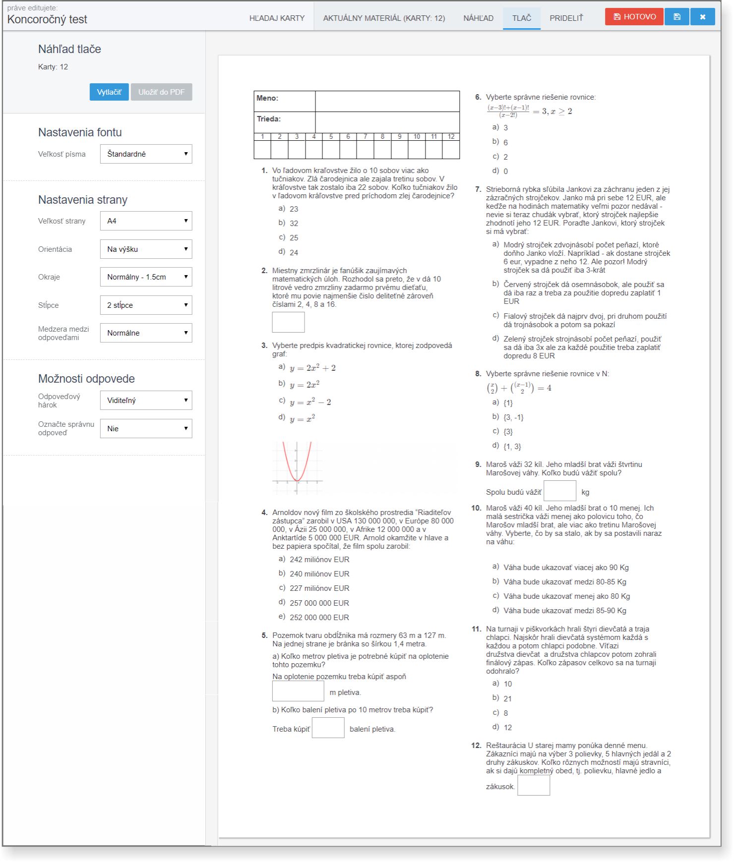 9. Zdokonalili sme nastavenia viditeľnosti otázok z testov. Ak robíte test s dvoma skupinami v rôznom čase, môžete napríklad nastaviť, že žiak výsledky uvidí až po vypublikovaní známok do IŽK. Nastavenie viditeľnosti môžete využiť aj naopak. Žiak vidí správne odpovede okamžite – aby sa počas skúšania rovno zamyslel. Dokonca máte možnosť Vaše otázky žiakom vôbec nezobrazovať, ak chcete svoje otázky pred nimi úplne skryť.