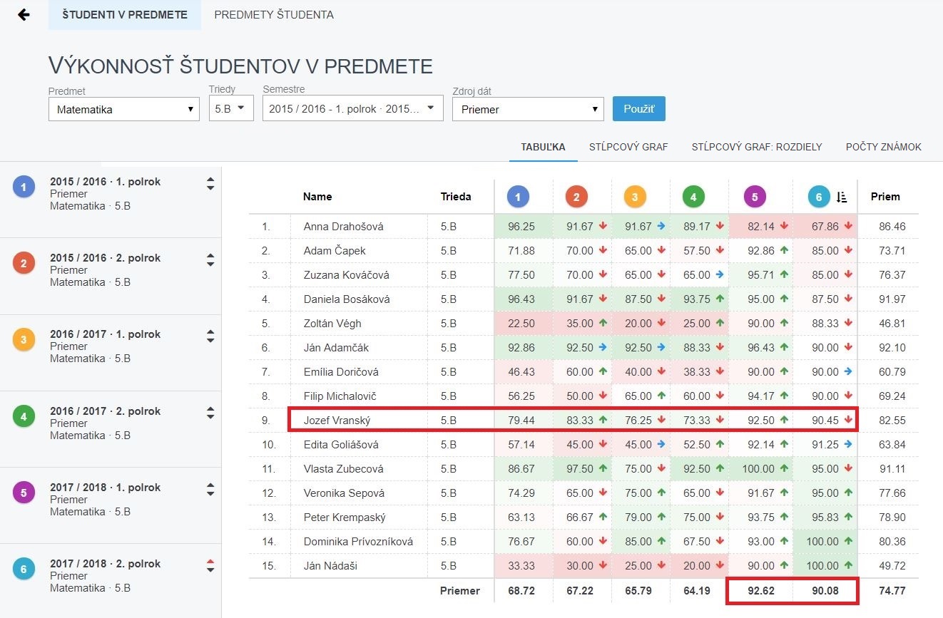 Systém umožňuje porovnávať aj žiakov viacerých paralelných tried v ročníku, alebo výsledky viacerých konkrétnych udalostí (písomky/testy) v jednej triede. Ale o tom v ďalšom blogu.