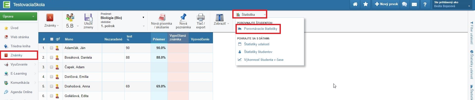 Skôr ako začneme – táto funkčnosť bola urobená pre zahraničné školy, ktoré ju požadovali. Vieme o tom, že existujú rôzne prístupy k hodnoteniu, alebo nehodnoteniu žiakov, resp. rôzne spôsoby motivácie žiakov. Asi je to tak správne, lebo zrejme neexistuje jediný správny prístup rovnaký pre všetky rôznorodé deti. Preto prosíme, aby ste tento modul používali s rozvahou. Nerobte predčasné závery z málo relevantných údajov a výsledkom štatistík prideľte iba takú váhu, akú si naozaj zaslúžia.