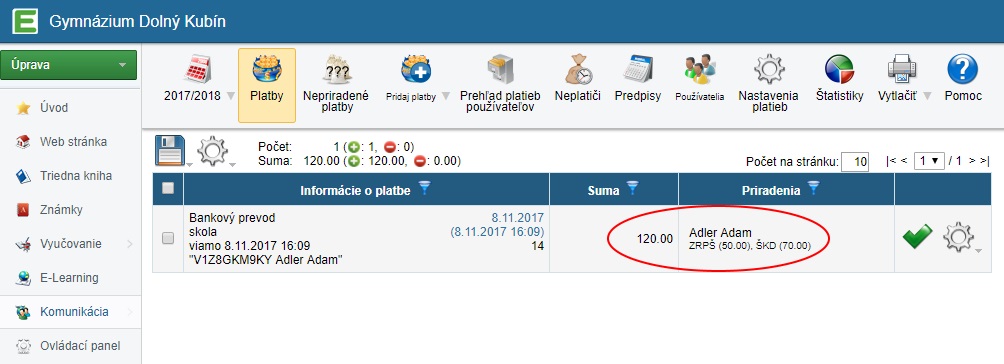 Aj škola ihneď po zaplatení vidí od koho a za aké predpisy dostala peniaze.
